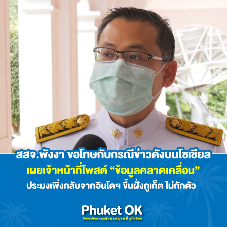 สสจ.พังงา ขอโทษกับกรณีข่าวดังบนโซเชี่ยล เผยเจ้าหน้าที่โพสต์ “ข้อมูลคลาดเคลื่อน” ประมงเพิ่งกลับจากอินโดฯขึ้นฝั่งภูเก็ตไม่กักตัว