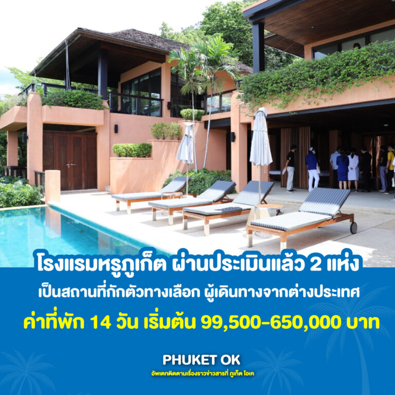 โรงแรมหรูภูเก็ต ผ่านประเมินแล้ว 2 แห่ง เป็นสถานที่กักตัวทางเลือก ผู้เดินทางมาจากต่างประเทศ ราคาค่าที่พัก 14 วัน รวมบริการทางการแพทย์ เริ่มต้นที่ 99,500 ถึง 650,000 บาท