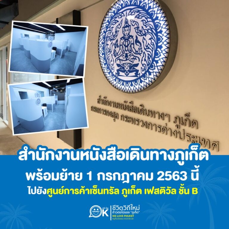 สำนักงานหนังสือเดินทางภูเก็ต ทำพาสปอร์ต ย้ายสำนักงานใหม่ ไปยังศูนย์การค้าเซ็นทรัล ภูเก็ต เฟสติวัล ชั้นB