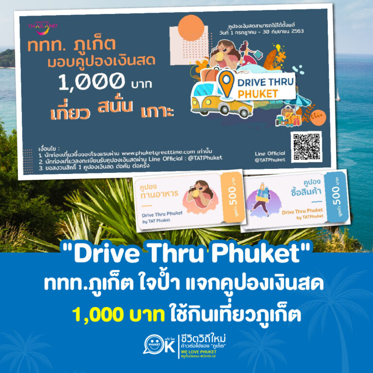 “Drive Thru Phuket” ททท.ภูเก็ต ใจป้ำ แจกคูปองเงินสด 1,000 บาท ใช้กินเที่ยวภูเก็ต